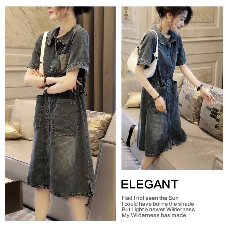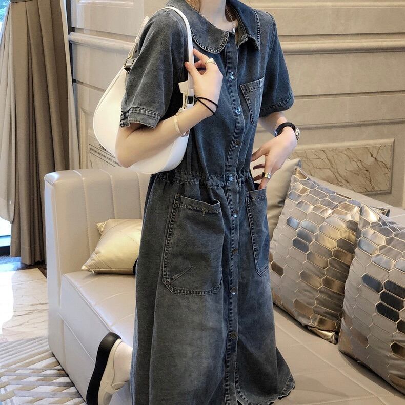 デニム素材の一枚で着こなせるワンピースです。シンプルで通勤・通学・デートにも着まわせます。