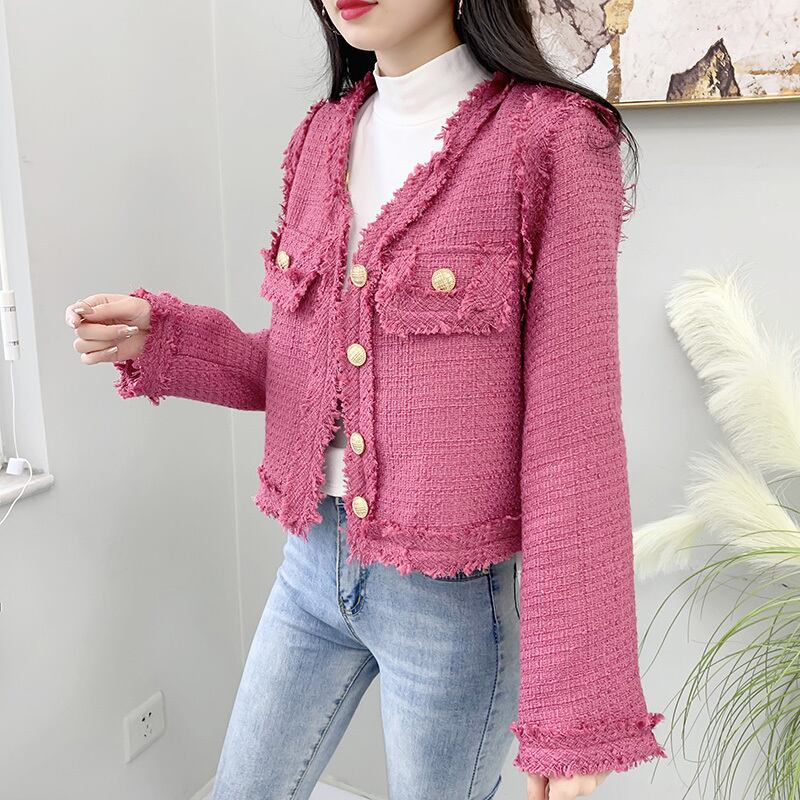 ジャケット レディース アウター 上着 ツイードジャケット ショート丈 袖あり 長袖 Vネック 襟なし 前開き 薄手 かわいい きれいめ 大人 おしゃれ レトロ 大人可愛い 大人女子 ラブリー フォーマル 甘辛 無地 秋 冬 入学式 謝恩会 結婚式 二次会 披露宴 クリスマス バレンタイン 20代 30代 レディース 女性用 ママ デート お出かけ 女子会 お泊まり 休日 パーティー イベント ホテル レストラン 着回し 重ね着 ファッション コーデ S M L ビビットピンク 送料無料