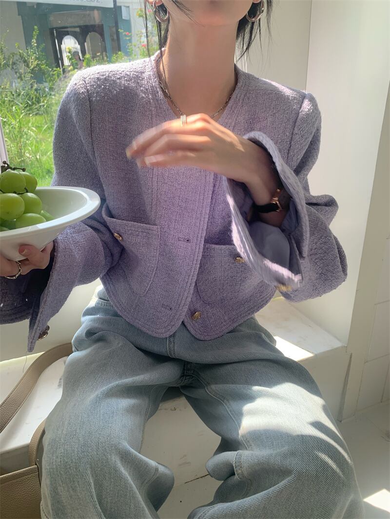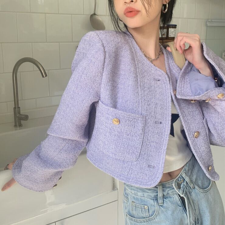 アウター レディース ジャケット コート ショート ショート丈 袖あり 長袖 襟なし 前開き かわいい 可愛い 大人 大人可愛い 大人女子 おしゃれ お洒落 クール かっこいい シンプル カジュアル こなれ感 ラフ 誕生日 10代 20代 30代 女性 女の子 通勤 OL 通学 学生 デート お出かけ 入学式 入園式 卒業式 卒園式 二次会 女子会 パーティー ファッション 普段使い 韓国 韓国系 オルチャン ファッション コーデ スタイル トレンド モテ S M ゆる ゆったり パープル 紫 送料無料