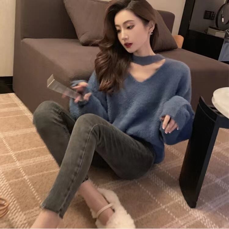 トップス レディース セーター ニット Vネック 長袖 ホルターネック ホルターネックセーター カジュアル シック シンプル 無地 クラシック お洒落 おしゃれ オシャレ ハイセンス トレンドアイテム 大人 大人可愛い 通勤 通学 学生 お出かけ 女子会 女子 女性用 デート 公園デビュー ランチ 楽ちん ゆる ゆったり 体形カバー 着回し こなれ感 ぬけ感 秋 冬 10代 20代 30代 ホワイト ワインレッド グレー ブルー S M L XL 韓国系 オルチャン 韓国ファッション 送料無料
