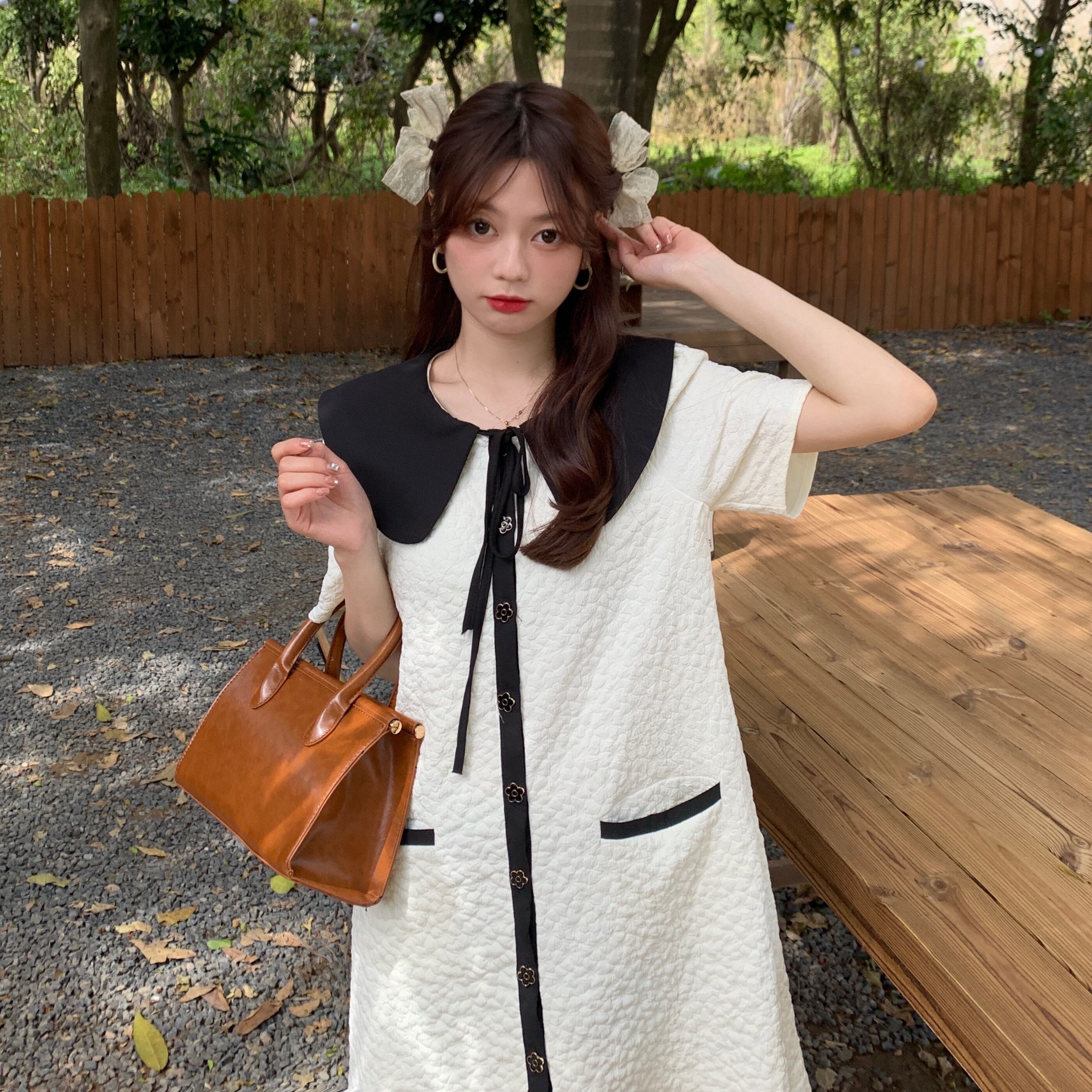 ワンピース レディース ミドル丈ワンピース ミドル丈 ひざ丈 半袖 フロントボタン ボタン リボン 大きい襟 バイカラー 配色 モノトーン カジュアル フェミニン クラシック シック シンプル きれいめ 大人 大人可愛い 通勤 通学 学生 お出かけ 女子会 女子 女性用 デート ランチ ディナー 女子旅 旅行 着回し こなれ感 ぬけ感 お洒落 おしゃれ オシャレ ハイセンス 10代 20代 春 夏 秋 ホワイト ブラック 白 黒 M L XL 2XL 3XL 韓国系 オルチャン 韓国ファッション 送料無料