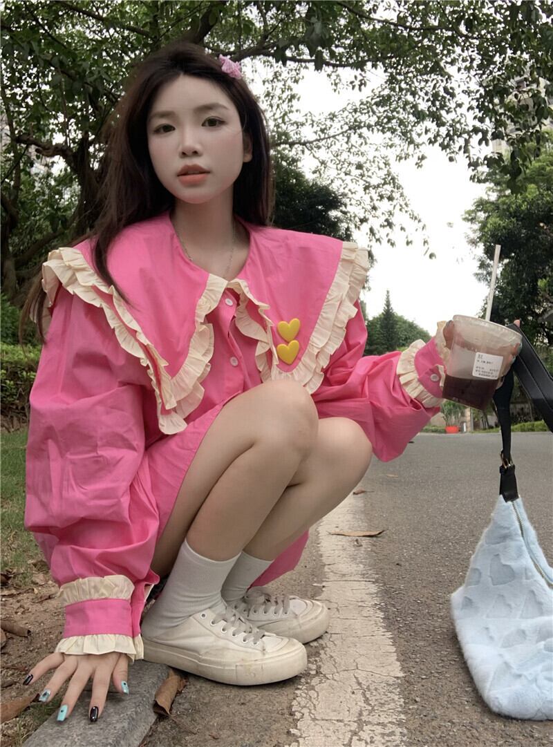 大きい襟が可愛いビビットカラーのロングシャツ♡