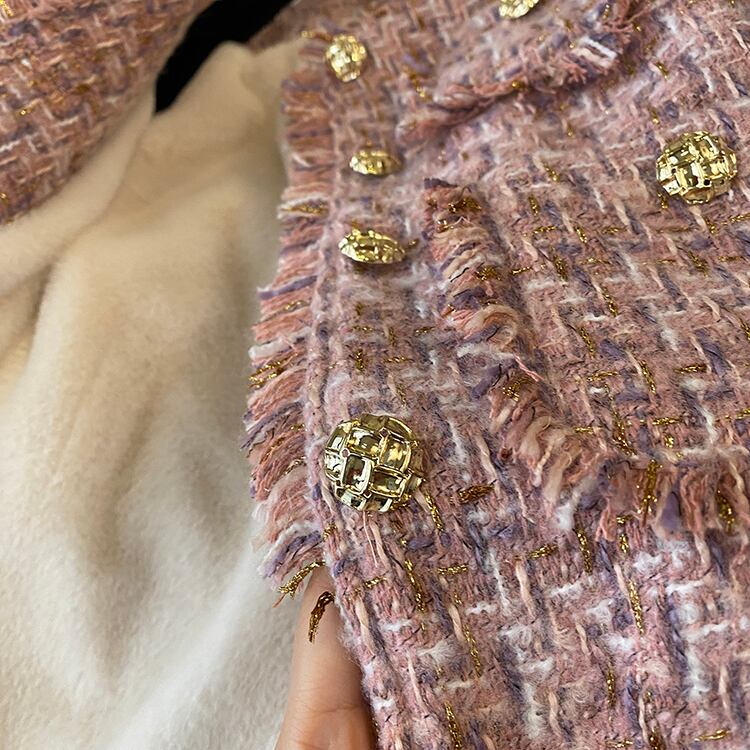 アウター レディース ツイードチェックジャケット ミディアム丈 長袖 ラウンドネック 襟なし ドッキング もこもこ ふわふわ 2点セット タータンチェック かわいい きれいめ 大人 上品 おしゃれ お洒落 大人可愛い 大人女子 こなれ感 ラブリー モード系 チェック柄 秋 冬 入学式 入園式 卒業式 卒園式 結婚式 20代 30代 40代 レディース 女性用 ママ ビジネス OL女子会 パーティー ホテル レストラン 重ね着 スタイル 暖かい モテ トレンド S M L ピンク 大人カラー 送料無料