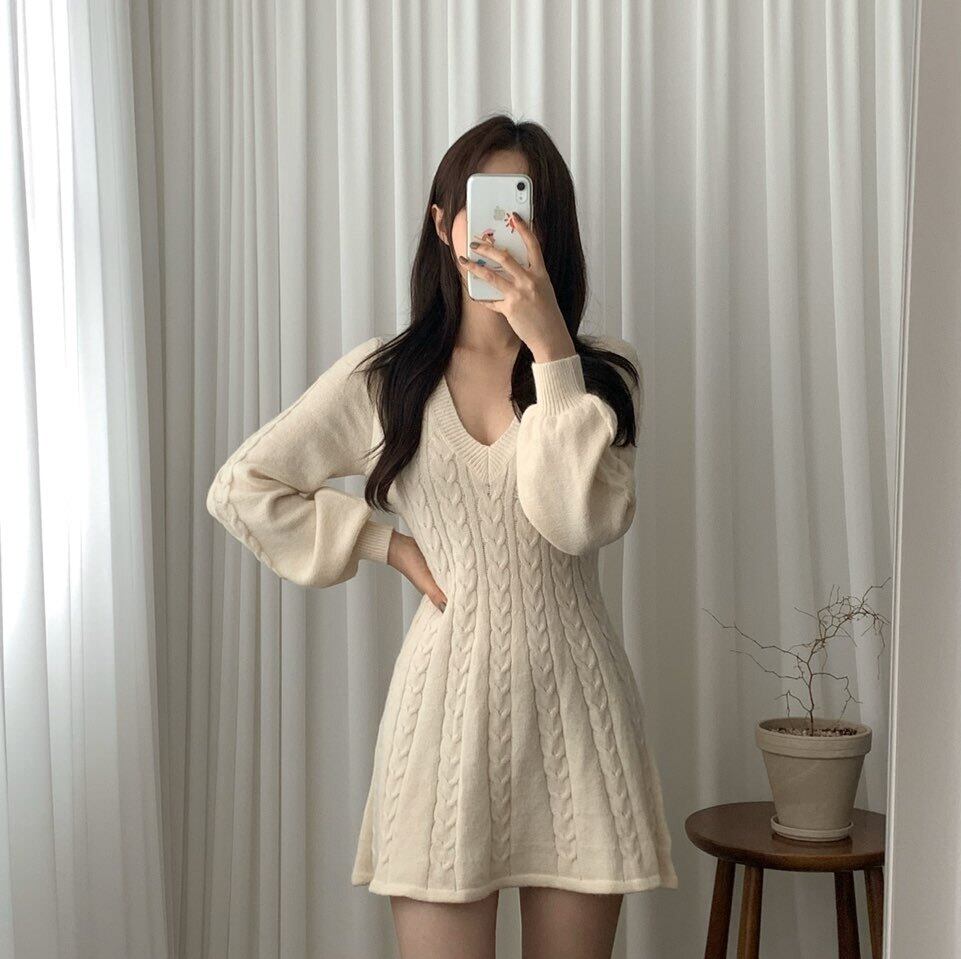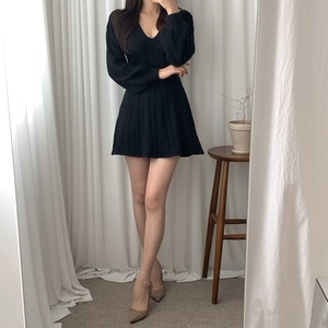 ワンピース レディース ニット プルオーバー ミニスカート Aライン ショート丈 ショート ミニ丈 ミニ 膝上 袖あり 長袖 パフスリーブ ボリューム袖 襟なし Vネック ハイウエスト かわいい 大人 大人可愛い 大人女子 きれいめ 上品 おしゃれ お洒落 ガーリー セクシー キュート シンプル カジュアル こなれ感 無地 デート お出かけ 公園デビュー 女子会 休日 旅行 イベント 韓国系 オルチャン 楽ちん 体型カバー ファッション コーデ モフモフ スタイル ワンサイズ ブラック ピンク 送料無料