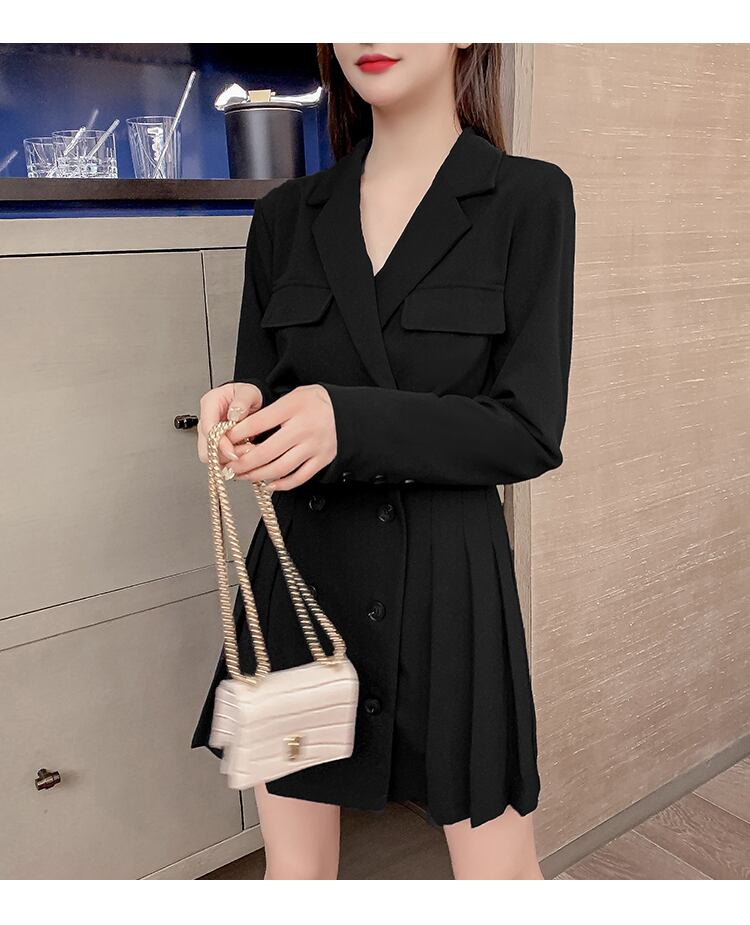 ワンピース レディース フェイクワンピース ミニワンピース ミニワンピ ジャケット風ワンピース ミニ ミニ丈 長袖 ダブルブレスト フロントボタン ボタン Vネック プリーツ カジュアル シンプル 無地 クラシカル クラシック シック お洒落 おしゃれ オシャレ ハイセンス トレンドアイテム 着回し こなれ感 ぬけ感 デート 女子旅 旅行 女子会 きれいめ 女性用 学生 通学 通勤 春 秋 10代 20代 ブラック カーキ S M L XL 2XL 韓国系 オルチャン 韓国ファッション 送料無料
