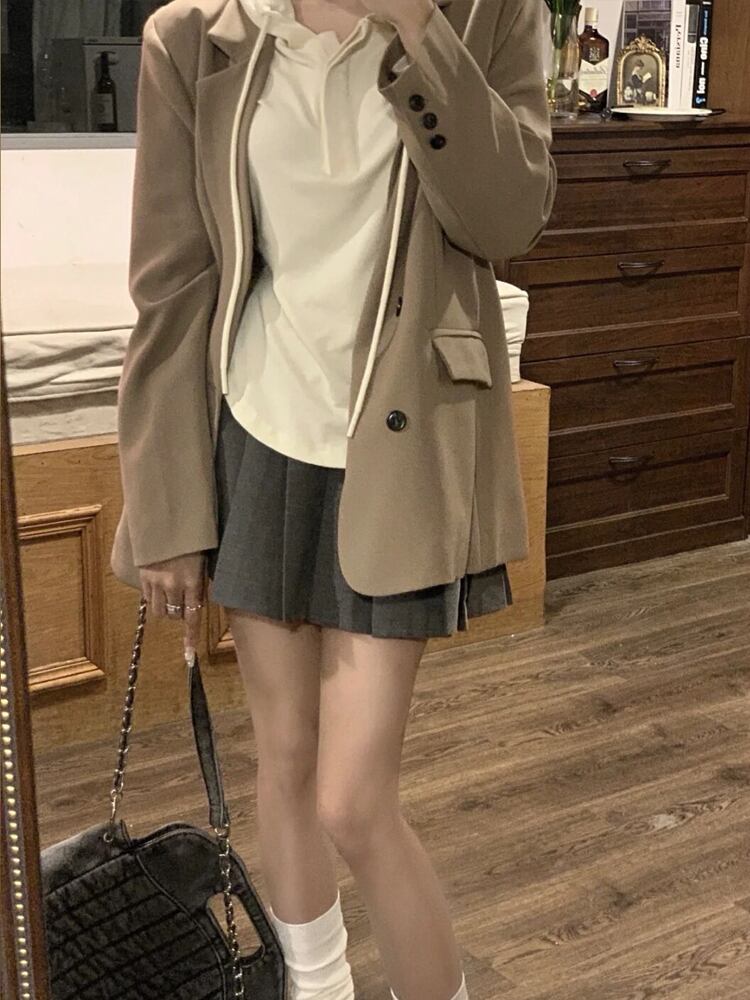 ジャケット アウター レディース 上着 ダブルジャケット ミディアム丈 袖あり 長袖 Vネック 襟付き ポケット 前開き 甘辛MIX かわいい 大人可愛い シンプル カジュアル 上品 おしゃれ かっこいい レトロ 大人可愛い ラフ メンズライク マニッシュ ボーイッシュ ガーリー 甘辛 無地 春 秋 20代 OL 通勤 学生 通学 デート お出かけ 休日 旅行 レストラン モテ 定番 ベーシック S M L 茶色 ブラウン 送料無料