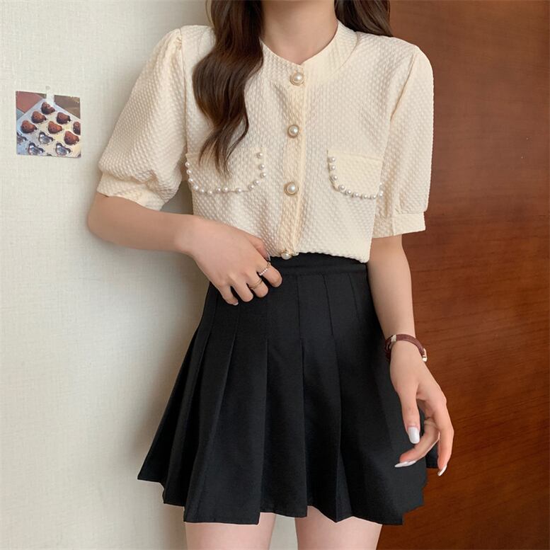 トップス レディース カーディガン レトロカーディガン ジャケット ライトアウター 半袖 クルーネック パールボタン パール ビジュー パフスリーブ ブラウス フェミニン ブルー ベージュ ホワイト 大人可愛い きれいめ 上品 エレガント フォーマル ガーリー ルーズ レトロ キュート 春 夏 秋 冬 二次会 お呼ばれ オフィス ビジネス OL 通勤 学生 通学 デート お出かけ パーティー イベント 女子会 休日 体型カバー モテ 普段使い 定番 トレンド ゆったり インスタ映え アースカラー 送料無料