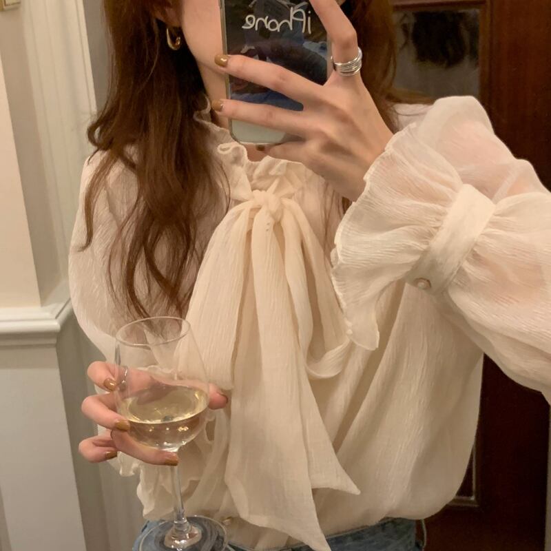 トップス ブラウス レディース リボン 袖あり 長袖 フレアスリーブ ハイネック フリル ビッグリボン 透け感 ぬけ感 シフォン 可愛い かわいい 大人女子 大人可愛い シンプル 上品 エレガント OL 通勤 学生 通学 大学生 ロング丈 おしゃれ お洒落 10代 20代 30代 女性用 お出かけ 女子会 イベント 旅行 ホテル レストラン 普段使い 韓国 韓国風 オルチャン こなれ感 カフェ ファッション コーデ スタイル 主役級 着回し お揃い モテ インスタ映え 可愛い オールシーズン送料無料