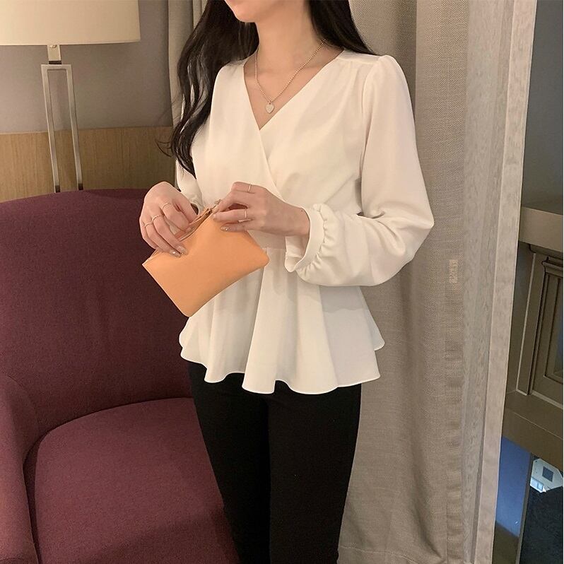 トップス レディース シフォンシャツ シフォン シャツ オフィス ビジネスシーン Vネック フレア 長袖 ウエストマーク きれいめ エレガントスタイル 大人 可愛い オフィス ビジネスシーン OL カジュアル シンプル 無地 クラシカル クラシック シック お洒落 おしゃれ オシャレ ハイセンス トレンドアイテム 着回し こなれ感 ぬけ感 デート 女子旅 旅行 女子会 女性用 通勤 休日 お出かけ 20代 30代 春 秋 ホワイト ブルー ピンク S M L 韓国系 オルチャン 韓国ファッション 送料無料