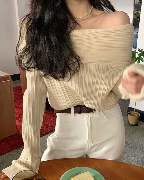 オフショルニットトップス♡