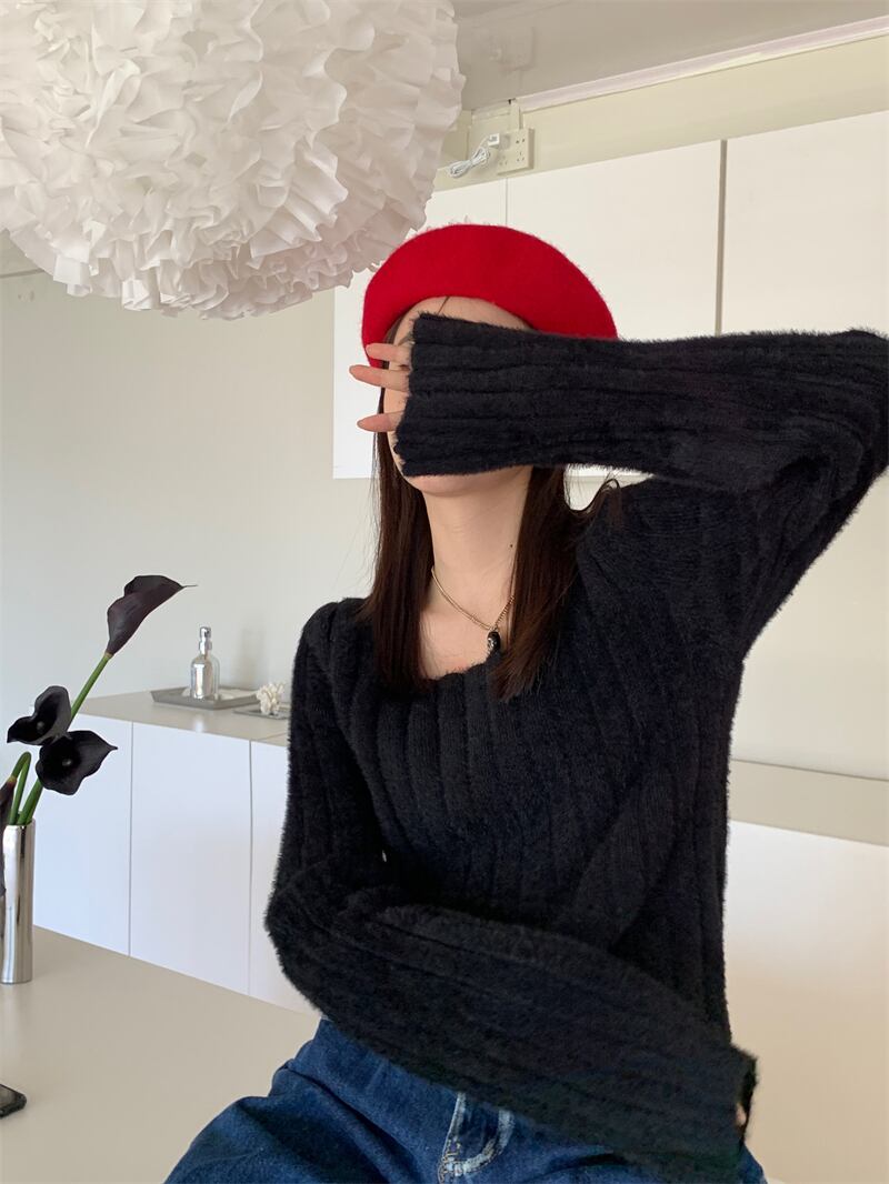 クロップド丈スクエアネックリブニット♡