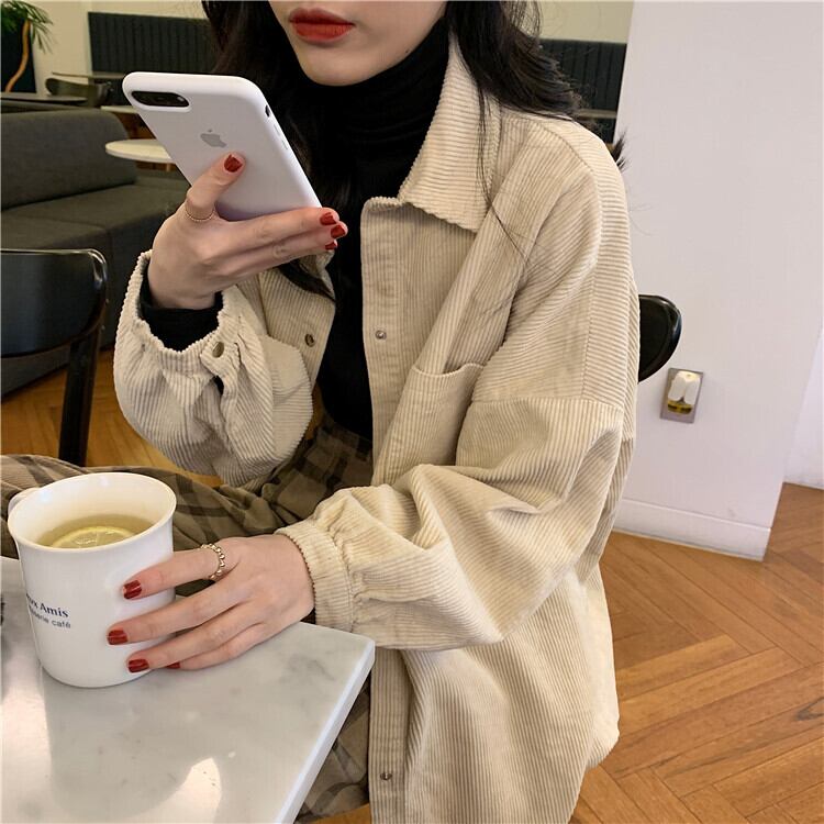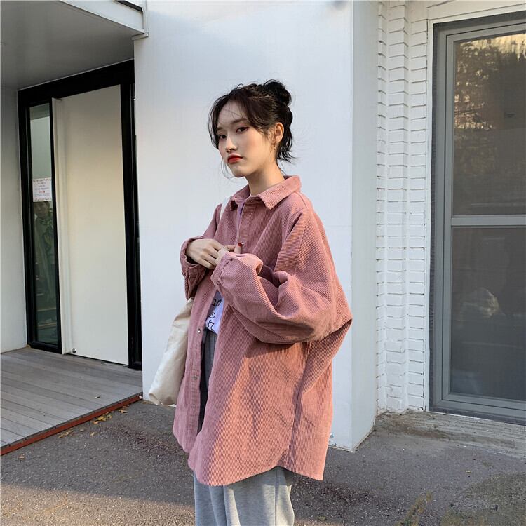 トップス レディース シャツ ブラウス コーデュロイ ロング丈 袖あり 長袖 前開き ぽわん袖 無地 トレンド フロントボタン ビッグシルエット ラフ 体型カバー 着痩せ 大人可愛い かわいい カジュアル フェミニン ガーリー 韓国 キュート おしゃれ お洒落 春 秋 冬 シーズンレス お出かけ デート 女子会 普段着 デイリー 着回し ピンク アイボリー ブラウン ブラック 10代 20代 30代 40代 モテ 大人カラー 秋カラー インスタ映え トレンド モテ ワンサイズ 送料無料
