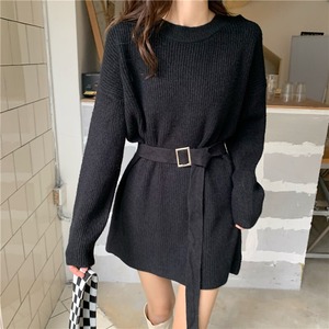 ワンピース レディース ニット プルオーバー ミニスカート Aライン ショート丈 ショート ミニ丈 ミニ 膝上 袖あり 長袖 襟なし ラウンドネック ハイウエスト ベルト かわいい 大人 大人可愛い 大人女子 きれいめ 上品 おしゃれ お洒落 ガーリー セクシー キュート シンプル カジュアル こなれ感 無地 デート お出かけ 公園デビュー 女子会 休日 旅行 イベント 韓国系 オルチャン 楽ちん 体型カバー ファッション コーデ ワンサイズ ブラウン ブラック グレー イエロー ホワイト 送料無料