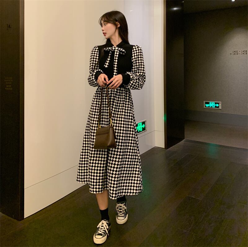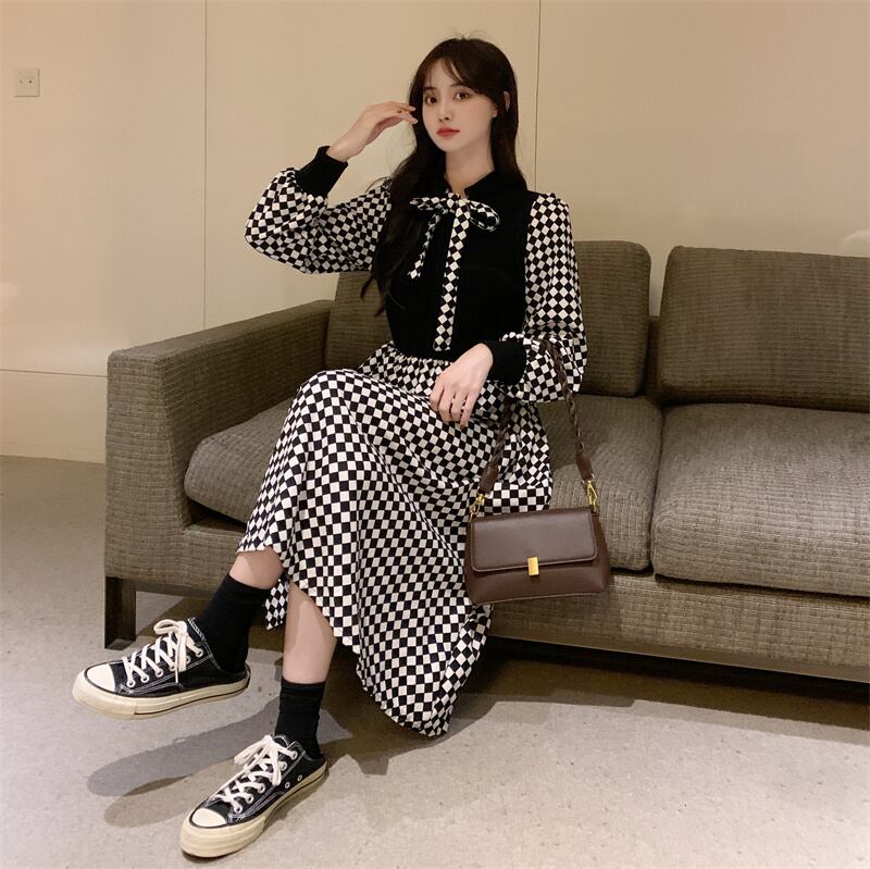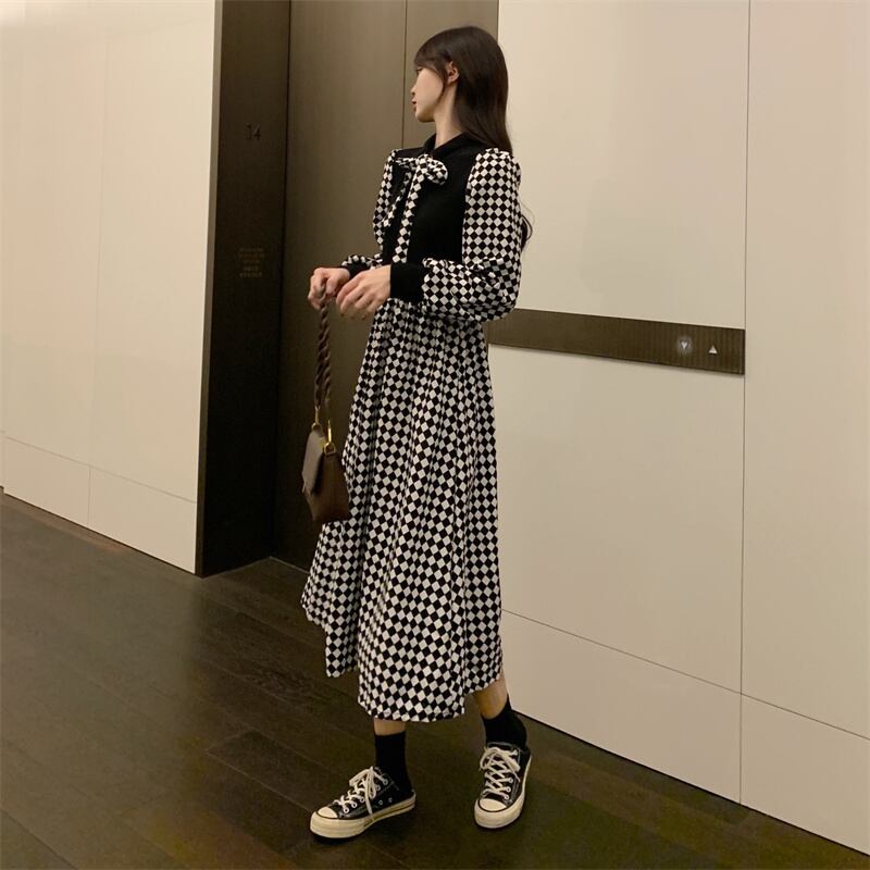 ワンピース レディース プルオーバー ロングスカート シャツワンピース ミディアム丈 袖あり 長袖 薄手 リボン かわいい 大人可愛い きれいめ カジュアル 大人 上品 おしゃれ お洒落 かっこいい レトロ 大人女子 こなれ感 キュート ガーリー ルーズ 個性的 クール エレガント 主役級 モダン 格子柄 千鳥格子 秋 冬 10代 20代 女性用 デート お出かけ 女子会 休日 パーティー イベント 旅行 ホテル レストラン 着回し 普段使い 重ね着 韓国 韓国系 オルチャン モテ ファッション 送料無料