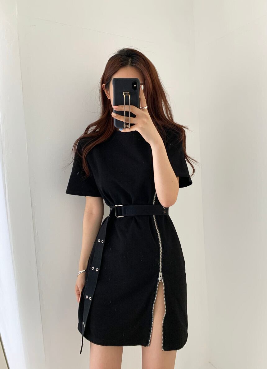 ワンピース レディース ドレスワンピース 袖あり ひじ丈 ショート丈 無地 ネクタイウエスト ジッパースプリット ストレート tシャツドレス スカート キレイ目 おしゃれ カワイイ 大人可愛い スタイリッシュ 美シルエット 韓国 上品 トレンド 普段使い 韓国 韓国系 K-POP オルチャン デート お出かけ 休日 旅行 イベント モテコーデ 10代 20代 30代 40代 女性用 レトロ モダン クラシック フェミニン シンプル こなれ感 カジュアル フォーマル 抜け感 スリム スマート 送料無料