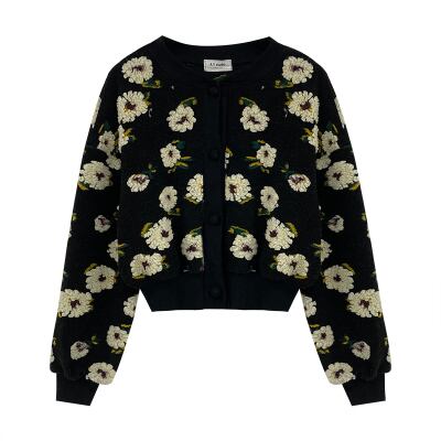 カーディガン トップス レディース ニットソー ミニ丈 ショート丈 クロップド 袖あり 長袖 ボリューム袖 ドロップショルダー 萌袖 バルーン 襟なし 刺繍 もこもこ モコモコ ふわふわ リブ 前開き 厚手 かわいい 大人可愛い カジュアル 上品 おしゃれ 大人女子 ラブリー キュート ガーリー 存在感 柄 花柄 秋 冬 20代 30代 レディース 女性用 OL 通勤 学生 通学 デート お出かけ 女子会 レストラン 重ね着 モテ 黒 ブラック 茶色 ブラウン 送料無料