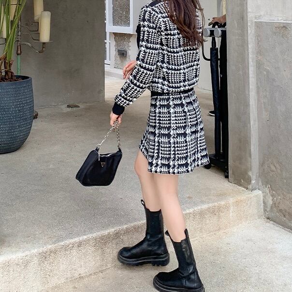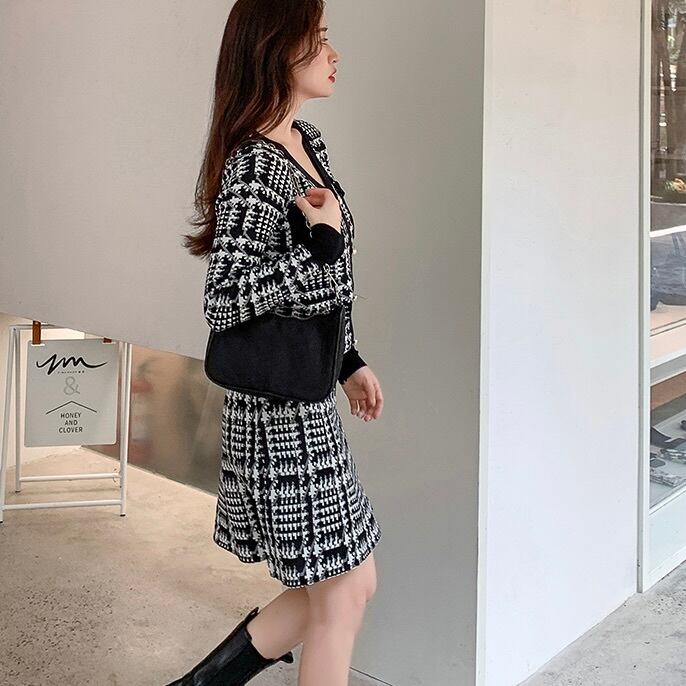 セットアップ レディース カーディガン スカート ミニスカート ニット素材 千鳥格子柄 Vネック モノトーン ブラック S M L 女子会 デート 通学 通勤 オフィス オフィスカジュアル 旅行 日常 休日コーデ 秋ファッション 冬ファッション イベント パーティー 二次会 コンパ レストラン 飲み会 カジュアル フェミニン 10代 20代 大人っぽい 高級感 上品 かわいい 綺麗め 韓国 韓国ファッション 韓国女子 オルチャンファッション 韓国通勤服 学生 OL お姉さんコーデ デコルテ 送料無料
