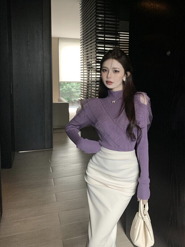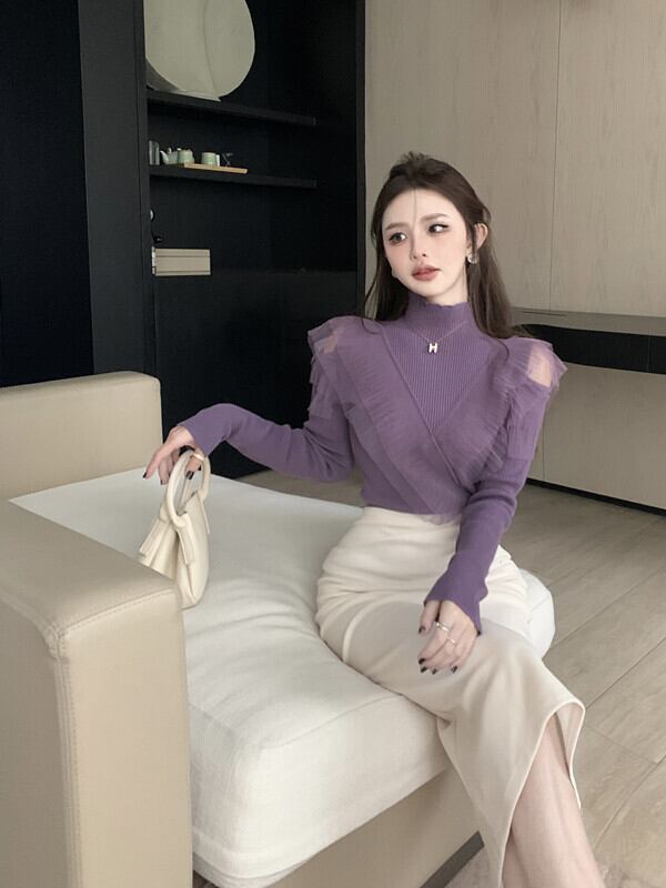 トップス レディース セーター ニット プルオーバー クロップド クロップド丈 オフショル オフショルダー ハイネック チュール フリル レース 薄手 かわいい 大人可愛い 上品 きれいめ シンプル カジュアル おしゃれ お洒落 レトロ 大人女子 こなれ感 ラフ キュート ガーリー エレガント セクシー 個性的 無地 秋 誕生日 二次会 10代 20代 デート お出かけ 女子会 休日 旅行 イベント パーティー 旅行 着回し 普段使い 重ね着 韓国 韓国系 オルチャン モテ ファッション コーデ スタイル
