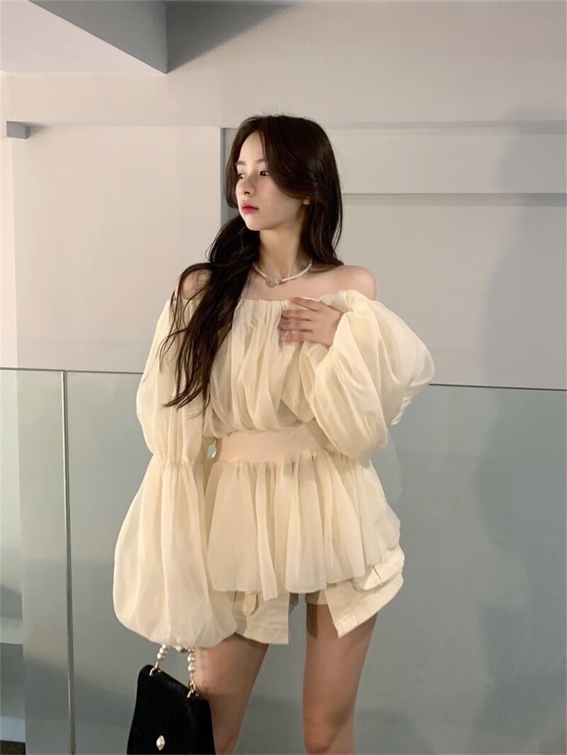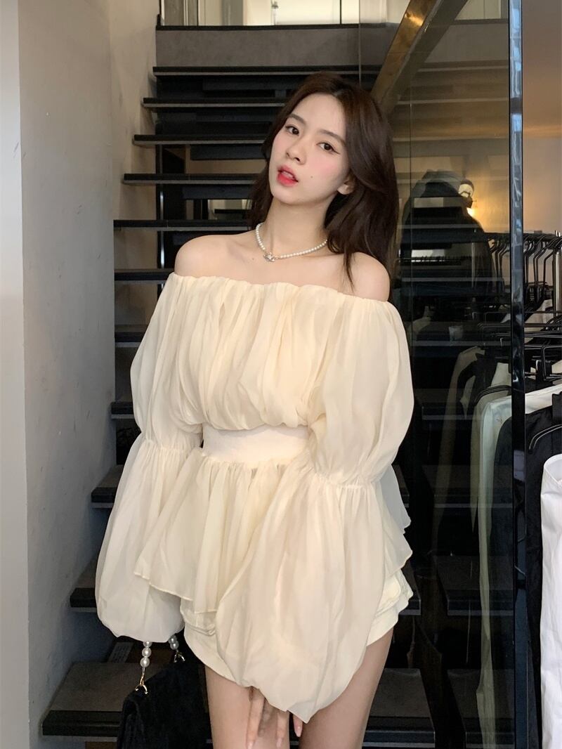 トップス レディース シャツ プルオーバー 長袖 パフスリーブ ボリューム袖 オフショル オフショルダー デコルテ デコルテ開き ハイウエスト ウエストゴム フリル ふわふわ 薄手 かわいい 大人可愛い きれいめ シンプル カジュアル おしゃれ お洒落 レトロ 大人女子 こなれ感 ラフ キュート ラブリー ガーリー エレガント セクシー 個性的 無地 誕生日 10代 20代 春 デート お出かけ 女子会 旅行 イベント 旅行 着回し 普段使い 体型カバー モテ ファッション コーデ スタイル フリーサイズ